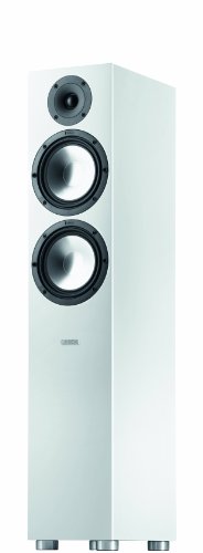 floor standing home speaker with 2.5-way bass reflex system, cloth cover removable from speaker cabinet, lacquered acoustic baffle, rear fix for storage of cloth cover