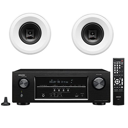 Denon AVR-S500BT 5.2 Channel Full 4K Ultra HD A/V Receiver with Bluetooth and 2 2-Way 6 1/2In-Ceiling Speakers – Cutout dims: 8 7/8″ (225mm) diameter