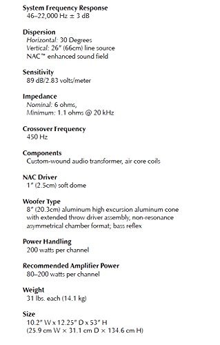 WOOFER TYPE 8″ (20.3cm) high excursion, high rigidity cone with extended throw driver assembly, non-resonance asymmetrical chamber format; bass reflex