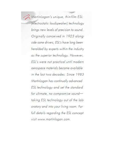 MartinLogan’s unique, see-through, thin-film speaker technology brings new levels of precision to sound, matching the performance provided by the latest high definition plasma televisions. Completely compatible with your audio equipment, your video equipment and your lifestyle, the MartinLogan Clarity provides a rich musical and cinematic experience in your home-without compromise and at an unrivaled price. The exclusive look, styling, colors and textures of fine furniture with a sonic performance beyond traditional technologies-including your favorite movie theater! Clarity-something extraordinary for your eyes and your ears.