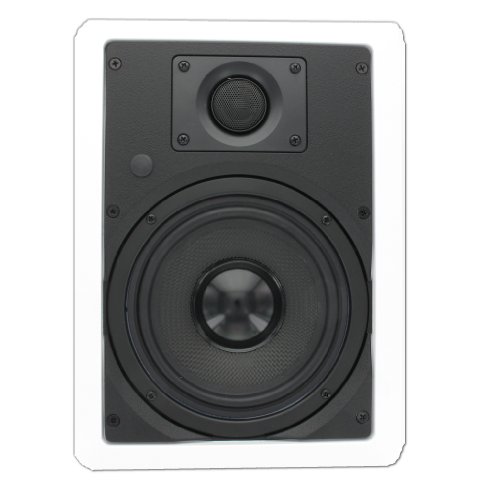 Theater Solutions by Gold wood Pair of In-Wall Speakers are newly designed for consumers who demand powerful bass in a compact package. High quality, lush bass and a full bodied sound at an affordable price. These speakers are perfect playing movie soundtracks or Mozart sonatas. Made with only the highest quality, moisture resistant materials to deliver unsurpassed sound in any listening environment. Sophisticated design and measurement equipment, including computer assisted design software were used to design these speakers to achieve an optimized balance and interface between components to give better quality performance and longer life. Their easy in-wall installation and ultra wide sound dispersion design make them ideal for discreet, single or multi-room installations. All of Theater Solutions models feature the latest swing-out dog leg mounting system for easy installation; paintable white aluminum grills that offer added rust protection in moisture-prone areas such as bathrooms, kitchens and saunas; as well as a fabric scrim inside the grill that hides the drivers from view and will not interfere with the sound. The woven Kevlar 6.5″ driver was designed for extended throw providing a full range of tones coupled with bullet-proof, time-tested toughness. The 1 inch pivoting silk and titanium dome tweeter pivots to direct sound at listeners, and its back chamber smoothest and extends its performance. All of these state of the art components and infra-red knock outs for remote control possibilities all add up to superior quality and design at a value that is second to none! Great symphony sound when used in conjunction with Theater Solutions in-ceiling speakers!